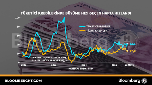 Bloomberg HTGrafikTüketi̇ci̇ kredi̇leri̇nde büyüme hızı geçen hafta hızlandı