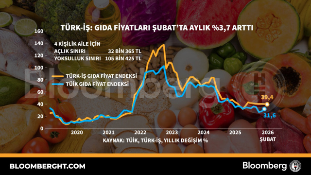 Bloomberg HT Grafik Türk-İş: Gıda fiyatları Şubat'ta aylık yüzde 3,7 arttı