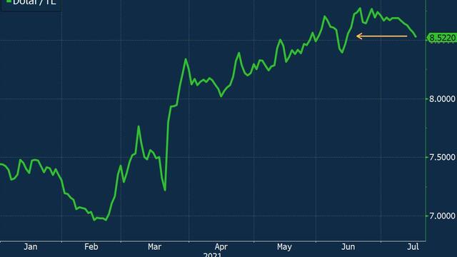ABD’de enflasyonun Ağustos 2008’den bu yana en yüksek seviyeye ulaşmasıyla bu hafta dolar karşısında değer kazanmaya başlayan Türk lirası, bayram öncesinde nakite dönüş eğiliminin artması ve Powell’ın Senato’daki güvercin konuşmasıyla kazançlarını sürdürdü.