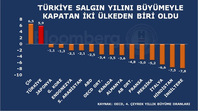 Bloomberg HT Haberler Türkiye salgın yılını büyümeyle kapatan iki ülkeden biri oldu