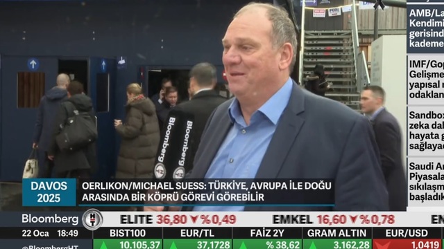 Oerlikon CEO'su Michael Suess Davos'ta Bloomberg HT'ye kutuplaşmış dünyada Türkiye'nin kendini nasıl konumlandıracağı sorusuna "Avrupa ile Doğu arasında bir köprü görevi görebileceği" yanıtını verdi.