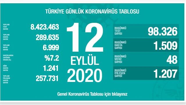Sağlık Bakanı Fahrettin Koca, Twitter hesabından yaptığı değerlendirmede, "Bugün yapılan yaklaşık 100 bin yeni test ile 1509 yeni hasta tespit edildi. Ağır hasta sayımızda artış devam ediyor. Virüsü yenecek güç birlikte mücadeledir." ifadelerini kullandı.
