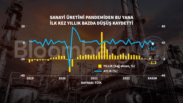 Yılın son çeyreğinde sanayi üretiminden gelen sinyaller büyümede yavaşlamaya işaret etmişti. Kasım ayında sanayi üretimi bir önceki yılın aynı dönemine göre yüzde 1,3 gerilemişti. Böylelikle sanayi üretimi pandemiden bu yana ilk kez yıllık bazda düşüş yaşamıştı.