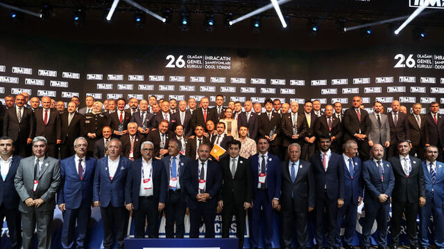 Türkiye Cumhurbaşkanı Recep Tayyip Erdoğan, İstanbul'da İhracatın Şampiyonları Ödül Töreni ve Türkiye İhracatçılar Meclisi (TİM) 26. Olağan Genel Kurulu'na katıldı. Cumhurbaşkanı Erdoğan, ödül alan iş insanları ile fotoğraf çektirdi.