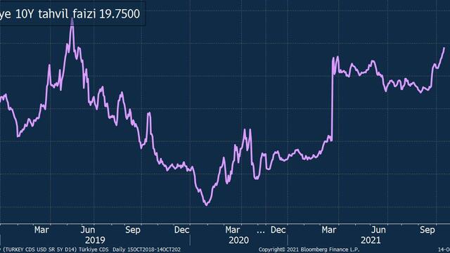 Türkiye’nin kredi temerrüt risk primi (CDS) 453 baz puana ulaşarak 6 ayın zirvesine tırmanırken Türkiye’nin 10 yıllık tahvil faizi yüzde 19,81 ile Mayıs 2019’dan bu yana en yüksek seviyede bulunuyor.