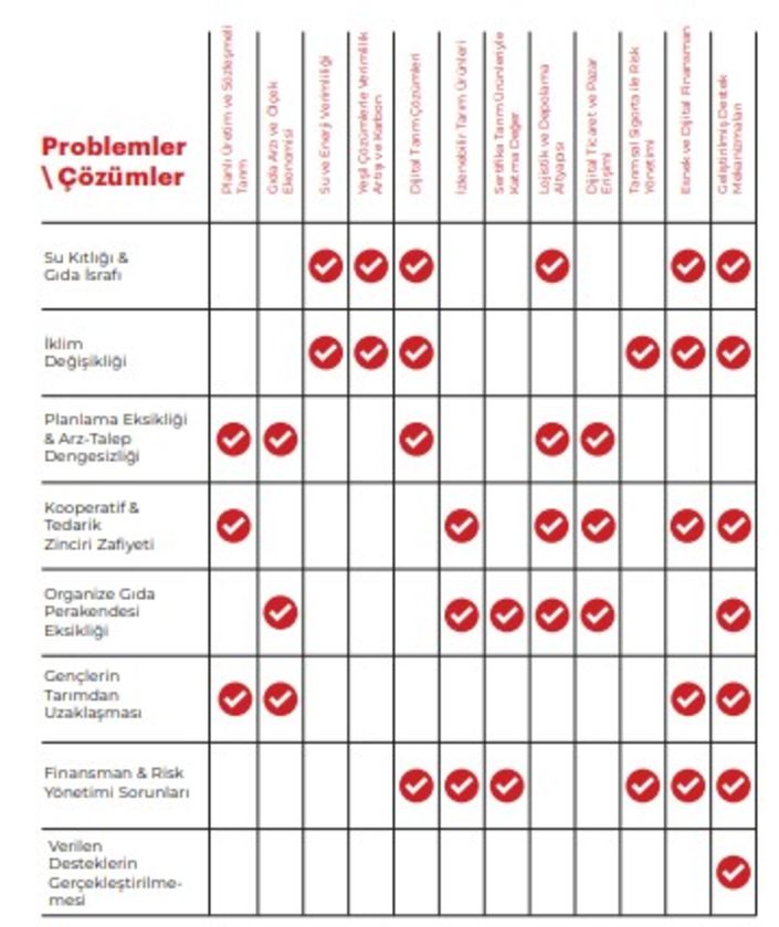 • Tarım ve gıda sektörü, ekonomik büyümenin, sosyal refahın ve çevresel sürdürülebilirliğin kesişim noktasında yer alıyor. Ancak su kıtlığı, iklim krizi, üretim planlamasındaki eksiklikler, hatalar ve gençlerin sektörden gün geçtikçe uzaklaşması gibi yapısal sorunlar, sistemin dayanıklılığını tehdit ediyor.