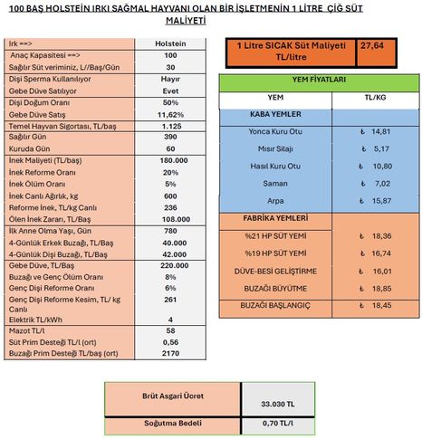 • Tüm Süt, Et ve Damızlık Sığır Yetiştiricileri Derneği (TÜSEDAD), Şubat ayına ilişkin çiğ süt üretim maliyetini açıkladı.