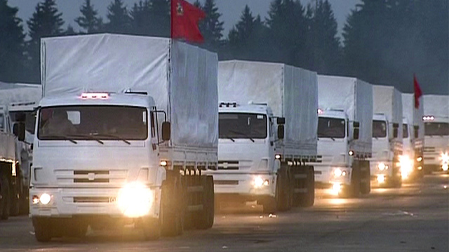 Rusya'dan yola çıkan 280 kamyonluk insani yardım konvoyu ayrılıkçıların kontrolündeki Doğu Ukrayna'ya ilerlerken Kiev konvoyun kabul edilebilmesi şartlar koydu ve Kızıl Haç içerik hakkında bilgi talebinde bulundu