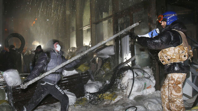 Cumhurbaşkanı Yanukoviç'in muhalefet parti liderleriyle bir araya gelmesinin ardından gelişme kaydedildiği ifade edilirken, göstericilerin, çatışmaların yer yer devam ettiği Avrupa Meydanın'da bulunan Ukrayna Evi'ni ablukaya aldığı bildirildi. Yaklaşık 200 kadar polisin bulunduğu Ukrayna Evi'ne taarruza geçen göstericiler kapıları ve pencereleri kırarak içeride bulunan polisler için koridor açıp çıkmalarını talep ettiler. Ukrayna Evi binasını sabaha kadar terketmeyen polislerin içinde yaralıların olduğu bildirilirken,olay yerine arabulucu olarak bazı milletvekilleri ve muhalefet Udar (Darbe) Partisi Lideri Vitaliy Kliçko'nun geldiği bildirildi.