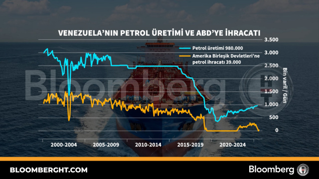 Bloomberg HT Grafik Venezuela'nın petrol üretimi ve ABD'ye ihracatı Venezuela'nın petrol üretimi ve ABD'ye ihracatı Giriş: 05 Ocak 2026, Pazartesi 13:14 Güncelleme: 05 Ocak 2026, Pazartesi 13:14
