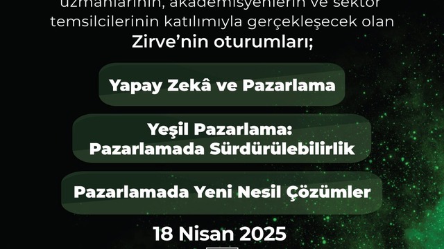 "İnovasyon Çağında Pazarlama" temasıyla düzenlenen zirve, ulusal ve uluslararası arenadan sektörün önde gelen isimlerini bir araya getirerek pazarlamanın geleceğini şekillendiren trendleri tartışacak, yapay zeka, sürdürülebilirlik, yeşil pazarlama ve yeni nesil pazarlama çözümleri gibi sektöre yön veren konuları ele alacak.