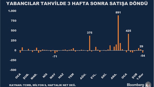Yurt dışında yerleşik kişiler piyasa fiyatı ve kur hareketlerinden arındırılmış verilerle 1 Mart haftasında 75,4 milyon dolar net hisse satışı yaptı.
