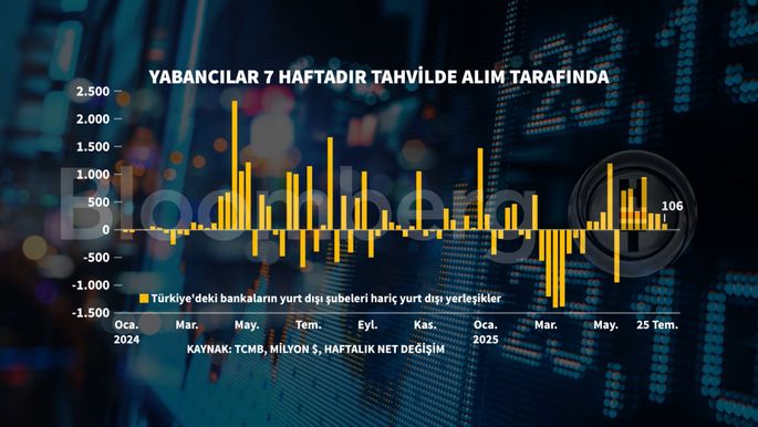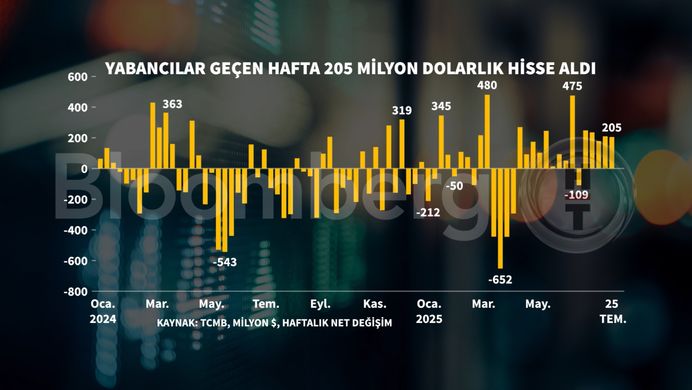 TCMB'nin verilerine göre 25 Temmuz haftasında yurt dışı yerleşikler 205 milyon dolarlık hisse alımı gerçekleştirdi. Veriler 27 Haziran haftasından bu yana yurt dışı yerleşiklerin yaklaşık 1 milyar dolar net hisse alımı gerçekleştirdiğine işaret etti.