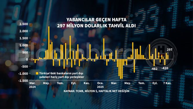 Yurt dışı yerleşiklerin 7 Kasım haftasında aldığı tahvil miktarı da 297 milyon dolar oldu. Yabancı bir hafta önce de 454,9 milyon dolar tutarında tahvil almıştı.