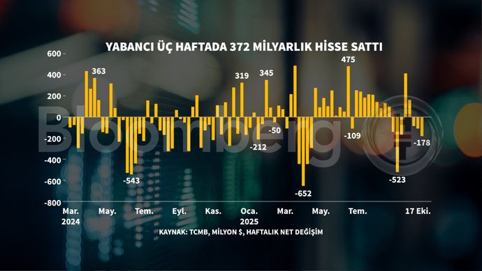 Yurt dışı yerleşikler 17 Ekim haftasında satışını üçüncü haftaya taşıdı. Yabancı yatırımcı geçen hafta 178 milyon dolarlık hisse sattı.