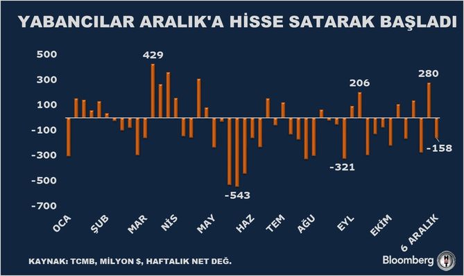 Aralık ayına hisse satarak giren yabancı yatırımcı bir önceki hafta 280 milyon dolarlık hisse alımı yapmıştı.