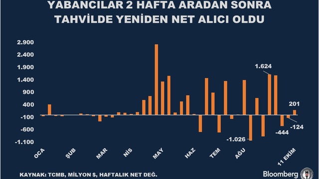 Yabancı yatırımcı 11 Ekim haftasında hissede satış yaparken tahvilde alıma döndü.