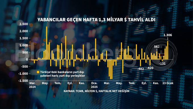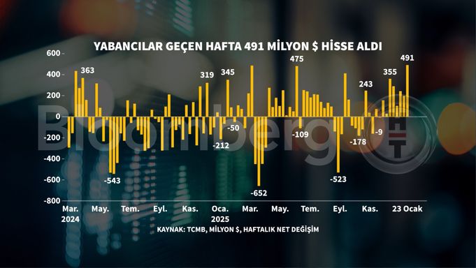 Yabancı yatırımcı 23 Ocak haftasında Türk varlıklarına yönelmeye devam ederek 490 milyon dolarlık hisse aldı.