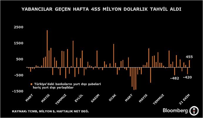 31 Ekim haftasında tahvil tarafında net satış ise 454,9 milyon dolar oldu.