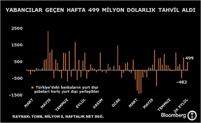Yurt dışı yerleşikler 26 Eylül haftasında 159 milyon dolarlık hisse, 498 milyon dolarlık da tahvil alımı yaptı.
