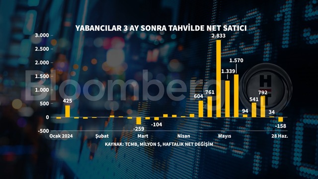 • Yurt dışı yerleşikler 28 Haziran haftasında tahvilde büyük çaplı çıkış yaptı. 680 milyon dolarlık satış yapılırken veri 26 Mart 2021 tarihinden bu yana en büyük çıkış oldu.