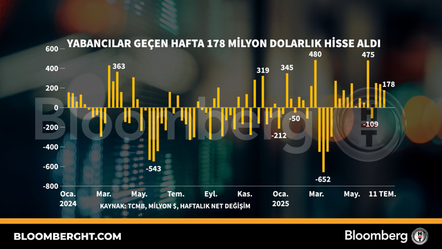 Bloomberg HTGrafikYabancılar geçen hafta 178 mi̇lyon dolarlık hi̇sse aldı