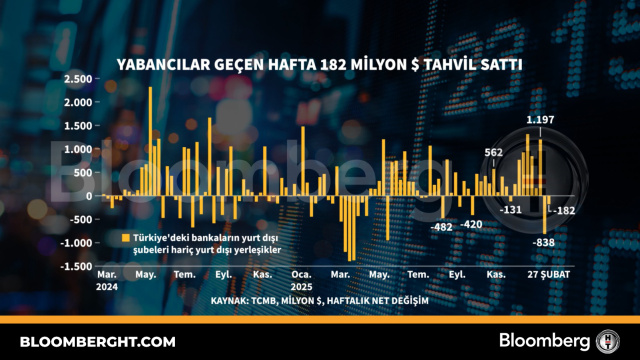 Bloomberg HT Grafik Yabancılar geçen hafta 182 milyon dolarlık tahvil sattı