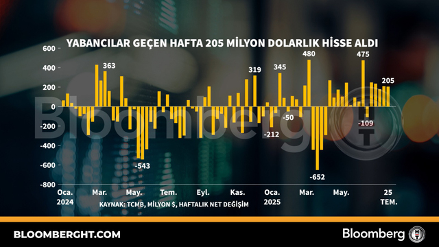 Bloomberg HTGrafikYabancılar geçen hafta 205 mi̇lyon dolarlık hi̇sse aldı