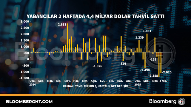 Bloomberg HTGrafikYabancılar iki haftada 4,4 mi̇lyar dolar tahvi̇l sattı