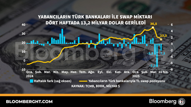Yabancıların Türk bankaları ile swap miktarı dört haftada 13,2 milyar dolar geriledi