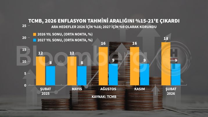 Daha önce yüzde 13-19 olan 2026 yıl sonu enflasyon tahmin aralığı yüzde 15-21 aralığına yükseltildi.