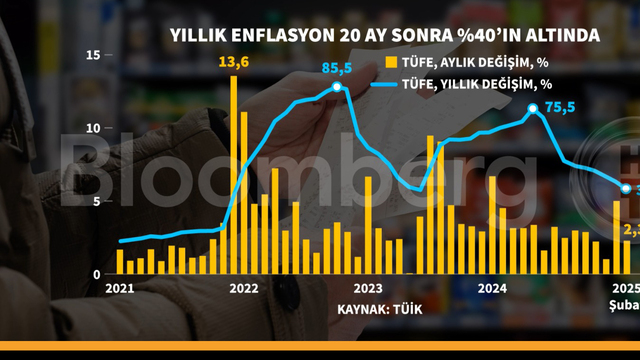 Bloomberg HT Grafik Yıllık enflasyon 20 ay sonra yüzde 40'ın altında Yıllık enflasyon 20 ay sonra yüzde 40'ın altında Giriş: 03 Mart 2025, Pazartesi 18:33 Güncelleme: 03 Mart 2025, Pazartesi 18:33