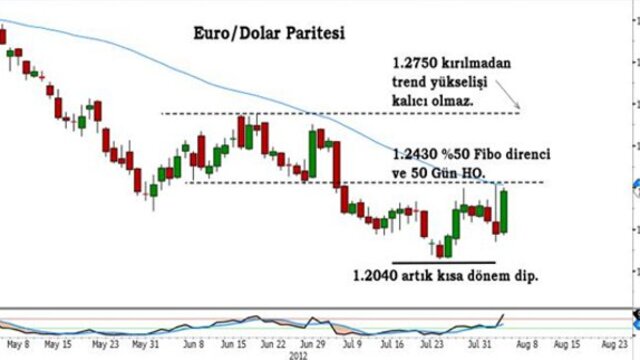 Euro/dolar paritesi doğrudan İtalya ve İspanya borçlanma maliyetlerinin rekor seviyeden gerilemesiyle destek bularak 1,2040’dan 1,2400’e mükemmel bir tırmanış sergiledi. Parite böyle bir yükseliş momentumu ile bir süre daha finansal endişelere omuz silkebilir ve güven aracı olan önce dolar’a ve hatta Avustralya, Kanada gibi yüksek getirili emtia dövizlerine karşı değerlenebilir. Ancak, kısa süreli iyimserlikler trend oluşturmaz. Geçen hafta iyimserliği satın almış görünmesi yanısıra temel veriler ile işlem yapan trader’ların oldukça skeptik (kuşkulu) olduğunu sanıyorum.