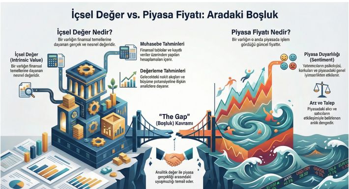 Bu noktada piyasa fiyatı, içsel değerden koparak yatırımcı duyarlılığının bir ürünü haline geldi dense yeridir. Yukarıdaki görselde ifade edilen “Değer Farkı” tam da burada büyüdü. Özetle köprünün iki yakası artık birbirini taşımıyordu.