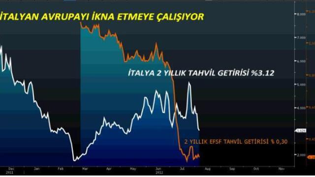Ancak şimdi anlaşılıyor ki bunların hiçbiri rastlandı değilmiş. Avrupa'nın bu borç krizinden kurtulması için krizin yarattığu hasarın paylaşamında 'Alman Hesabı' yerine ' İtalyan usulü' uygulancakmış. Yani borç ödemeyi zamana yayalım ve Merkez Bankasını devreye sokarak güneyin borçlarını tüm Avrupa'nın üzerine yayalım metodu.