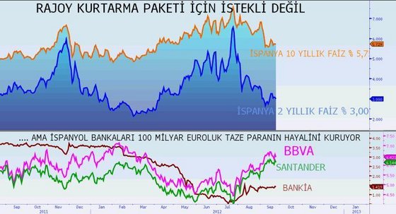 İspanya borçlanma faizlerinde görülen iyileşme piyasanın ECB’nin 2. piyasadan tahvil alacağı açıklaması ve İspanya’nın bir yardım paketi başvurusunda bulunacağı varsayımı ile gerçekleşti. Yani kimse İspanya’ya sıfırdan avans vermedi.