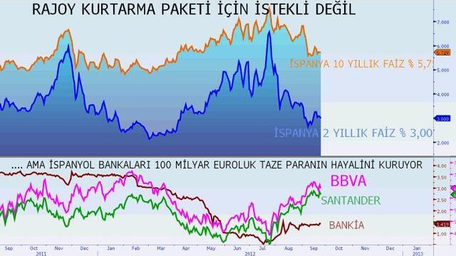 İspanya Başbakanı Rajoy, Avrupa Merkez Bankası (ECB) ile yürüttüğü diplomaside kartlarını son derece yavaş açıyor. ECB’nin kendisinden isteyeceği şartları görüp ona göre yardıma paketi kararını vermek isteyen Rajoy, piyasaların kendisine sağladığı ‘geçici ateşkese’ güveniyor. Bence de yanlış yapıyor.