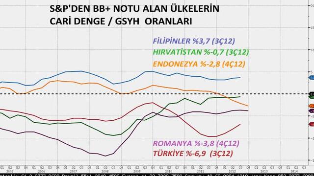 - “Cari açık 4 puan düştü, ,ihracat artıyor”. Cari açık 2012’nin Aralık ayı itibari ile dip yaptı. Yine çoğunluğun üzerinde hemfikir olduğu gibi 2013 Şubat itibari ile artamaya başlayacak ve sene başındaki 48 milyar $’lık cari açığın 60 milyar $ ile yıl sonunu % 6,8- % 7 arasında bitirmesi bekleniyor. Dolayısı ile cari açık düştü argümanı da aslında 2-3 ay öncesinin konusu. S&P ‘nin bugün bu konuda heyecanlanması yine “enteresan”.