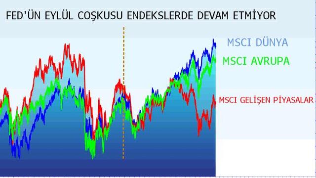 Eylül ayında FED'in azaltmayı pas geçmesi ve üzerine ABD'de yaşanan Bütçe ve Borç Tavanı sorunları piyasalardaki algının değişmesine yol açıyor. Dolar endeksinin 80.00 seviyesinin altına inmesi, ABD 10 yıllıklarının % 2.60'lara gerilemesi ve son açıklanan Özel Sektör İstihdam verisinin beklenenden düşük gelmesi piyasada "Acaba ABD'de bu siyasi kriz yaşanırken FED Tahvil alım programının azaltılmasını birkaç ay daha erteler mi?" sorusunun sorulmasına yol açıyor.