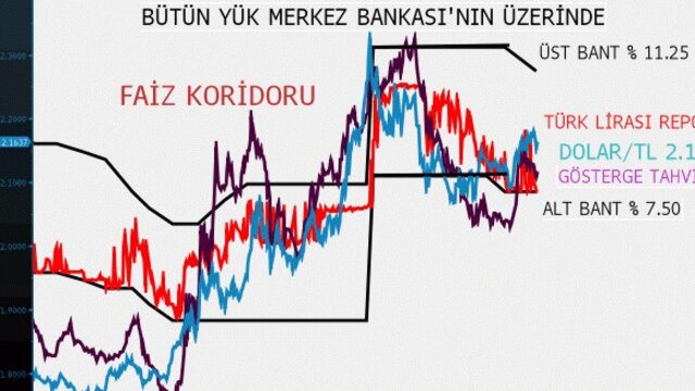 Türkiye Cumhuriyet Merkez Bankası koridorun üst bandında indirime gitti. Piyasalarda "Ne değişti de üst koridor aşağı geldi?" diye soran da var. "Ancak sermaye hareketlerinde giriş çok artacak olursa bu bant aşağı iner.” diyen de vardı.