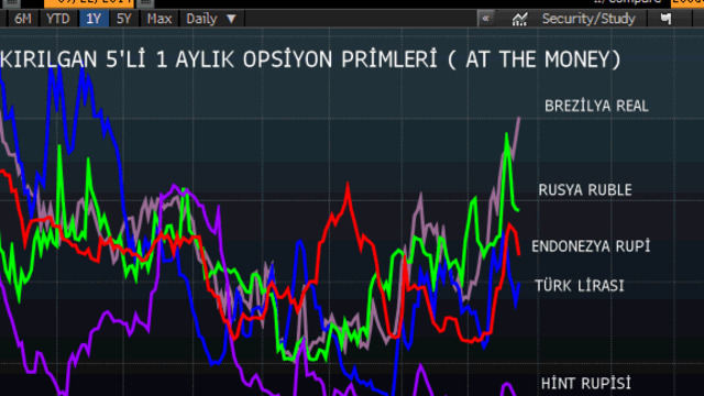 Eylül başından itibaren baktığımızda 1 aylık para yapan (at the money) opsiyon için en fazla prim Brezilya Reali ve Endonezya Rupisine ödeniyor. Ayrıca yine bu iki kurun oynaklığı son 3 hafta içinde en fazla artanlar.
