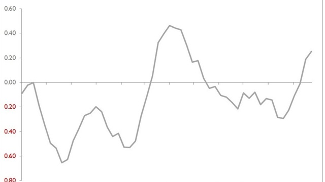 Asya'dan gelen veriler şu anda dikkate değer bir düzenlilik ile fikir birliğine veya eğilime uygun diyebiliriz: Yayınlanan 22 veriden, Güney Kore’nin Eylül ayı tüketici güveninde beklenmeyen bir toparlanmanın oluşu gerçekten sürpriz oldu.. Bununla birlikte, Singapur’un Ağustos ayı sanayi üretimindeki yıllık %8’lik düşüşü ve Japonya’daki ÜFE’nin beklentilerin üstünde yıllık %0,6 oranında artması, bu hafta meydana gelen 2 şokun temel sebepleriydi. Genel olarak, altı haftalık sinyal çok hafif negatif bölgede kaldı.
