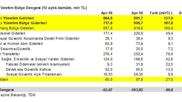 Geçen yıl Nisan ayında 53 mlr TRY olan 12 aylık bütçe açığımız, Nisan 2019’da 104 mlr TRY (GSYH %2.6) oldu. Bozulmanın temelde 3 sebebi var.