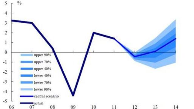 Aşağıdaki grafikte varolan belirsizlik senarolarına göre büyüme tahminleri yapılmış durumda. Tahminler Avrupa Birliği’nin kendisine ait.
