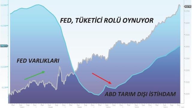 FED’in bono almasının söylenen, konuşulan ve çok bahsedilmeyen nedenleri var. En temelde, maksimum işgücü oranı ve sürdürülebilir bir çekirdek enflasyon hedefi olan FED bunu sağlamak için olağanüstü önlemlere başvuruyor. 2007 krizi sonrasında şirket evliliklerine ön ayak olan, onlarca tek seferlik ya da süreli likidite ve sermaye enjeksiyon programı hazırlayan ABD Federal Merkez Bankası böylece yenilikçi olmaya da devam ediyor. 2008 yılında QE olarak da anılan (parasal genişleme) politikaya geçen banka böylece düşen işsizliğe karşı kredi koşullarını kolaylaştırmaya çalışıyor. Uzun vadeli düşük faiz sözü de veren FED böylece bireylerin ve kurumların yatırım&tüketim talebini de canlandırmaya çalışıyor.