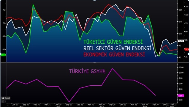 Türkiye’de hem yatırım ortamı yani reel sektör algısı, hem de tüketim ortamı yani hanehalkı beklentilerinin iyileşmesi “zayıf büyüme” veya “büyüyeme” sendromunu yenmek için en önemli ilk adım. Güvenin toparlanmaya başladığı nokta büyüme çarklarının yeniden dönmeye başladığı nokta oluyor. Ve yine güvenin toparlandığı nokta kredi talebinin canlandığı , büyümeye yansıdığı nokta oluyor.