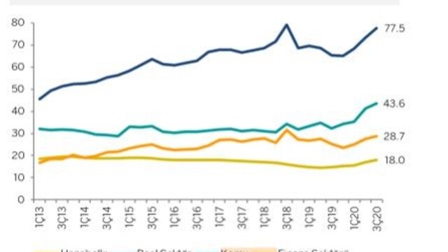 Türkiye’de ise reel sektör firmalarının yurt içi ve yurt dışından kullandığı krediler ile tahvil ihraçlarını kapsayan finansal borçlarının GSYİH’ye oranı 2020 yılı Ocak ayına göre 15 paun artarak %70’e yükseldi. Salgının etkilerini azaltmak amacıyla kullandırılan teşvik kredileri, borcun artmasının ana sebebi oldu. Döviz borçluluğunda ise 2018 devalüasyonu sonrası hem özel sektörün negatif hafızası yani kur şoku travması hem de hükümetin getirdiği regülasyonlarla reel sektör döviz borcunu 15 milyar dolar azalattı ve 290 milyar dolar seviyesine düşürdü.