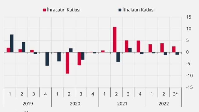 Türkiye swap hariç eksi 60 milyar dolara ulaşan rezervi ve tarihindeki en yüksek net hata noksan rakamı ile cari açığını fonlamaya çalışıyor. Dolayısıyla dışarıya kapatılan sermaye hareketlerinden sonra özellikle enerji ithalatı faturasındaki artışla büyüyen cari açığın finansmanında turizm ile birlikte en önemli kaynak net ihracat. Bununla birlikte TCMB; üretim ve yatırım odaklı politikalar ile cari dengenin iyileşmesinin döviz piyasalarındaki istikrarlı seyrin sürmesine ve enflasyondaki düşüş sürecine katkı sağlamasını arzulamakta. Buna rağmen İhracata dayalı büyüme modeline geçtiğinden beri büyümenin bileşenlerini ele aldığımızda örneğin bu yıl yüzde 5’lik büyümenin yalnızca 1,5 puanın net ihracattan gelmesi bekleniyor.