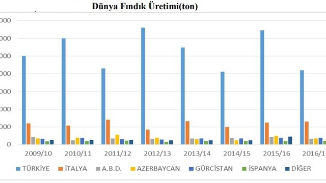 Dünyadaki toplam fındık üretiminin yüzde 65-70'ini Türkiye tek başına gerçekleştiriyor.