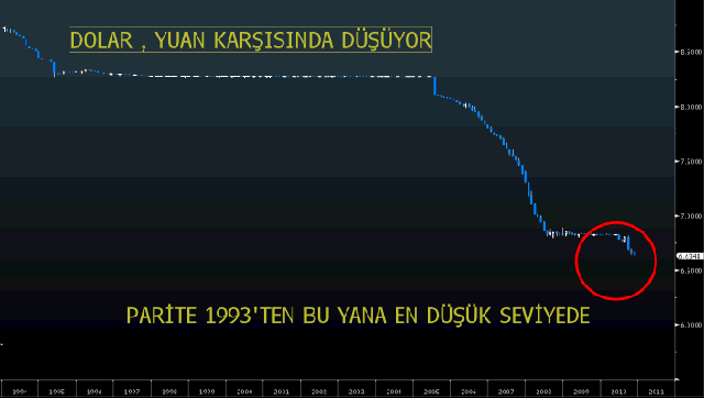 1993 yılından beri en yüksek seviyesine işaret ediyor. Yuan, dolar karşısında